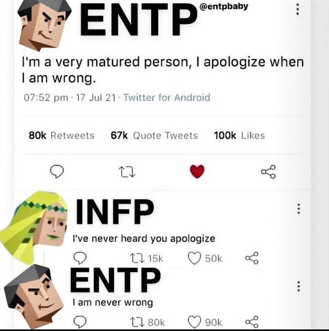 Getting their revenge for ENTP lol 😄 Know more about your type? Check out the app. Link in bio! . . . . . . . #mbti #mbtitypes… | Instagram