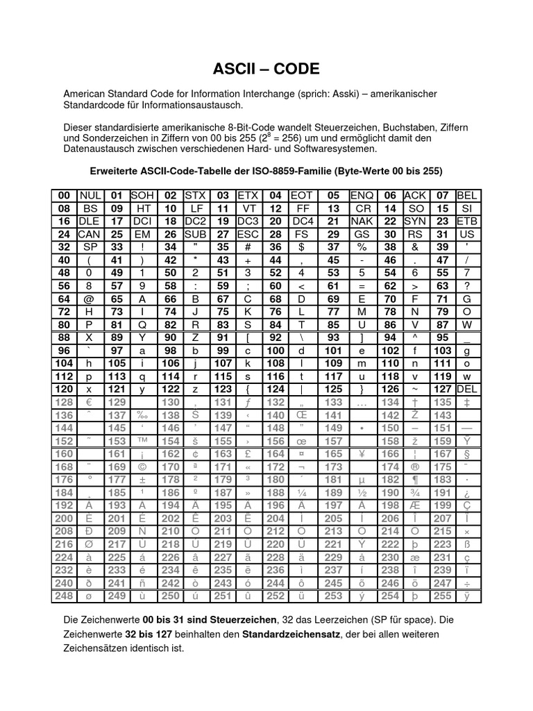 Tabelle ASCII zum Runterladen - VirtualUniversity