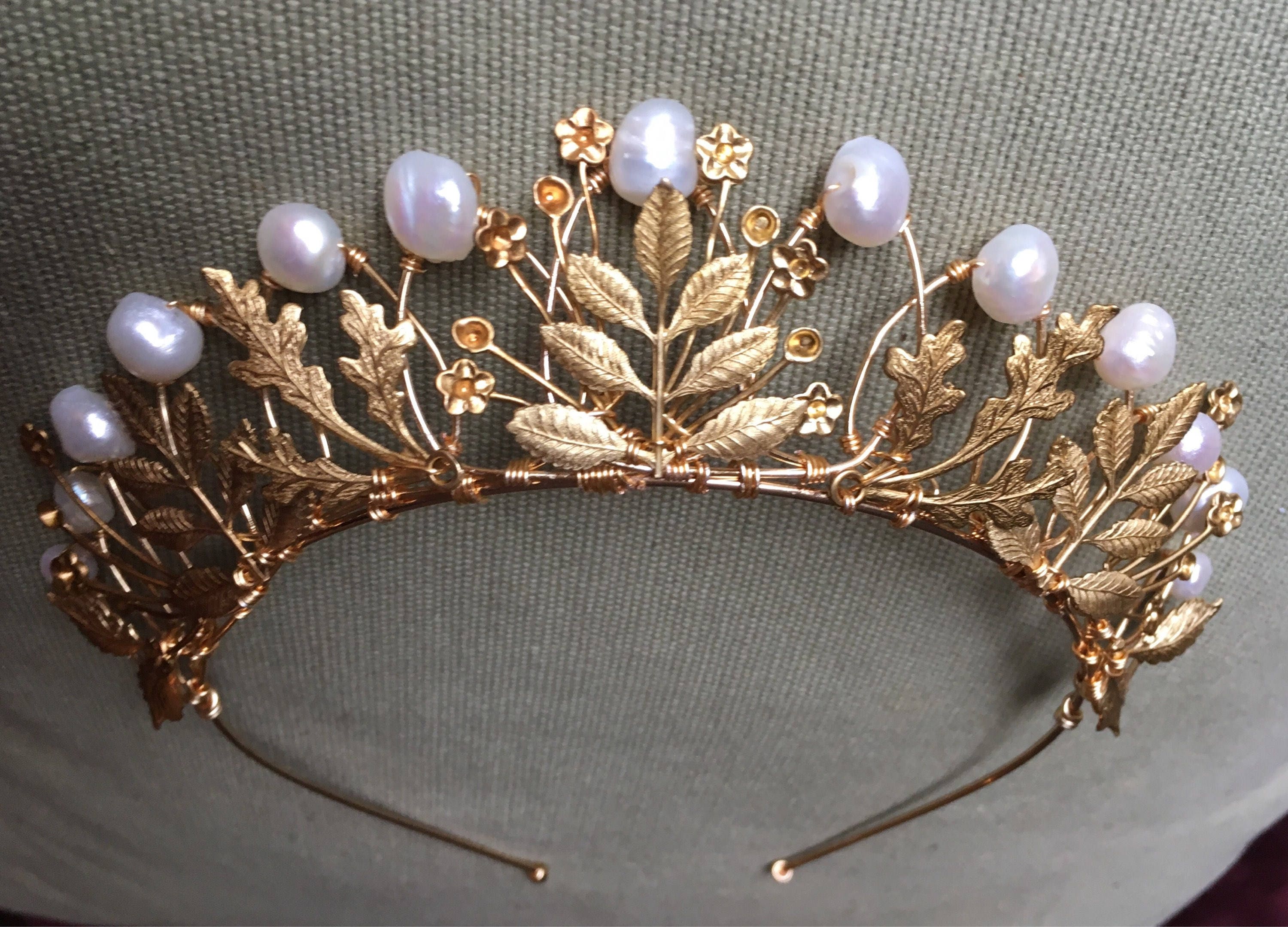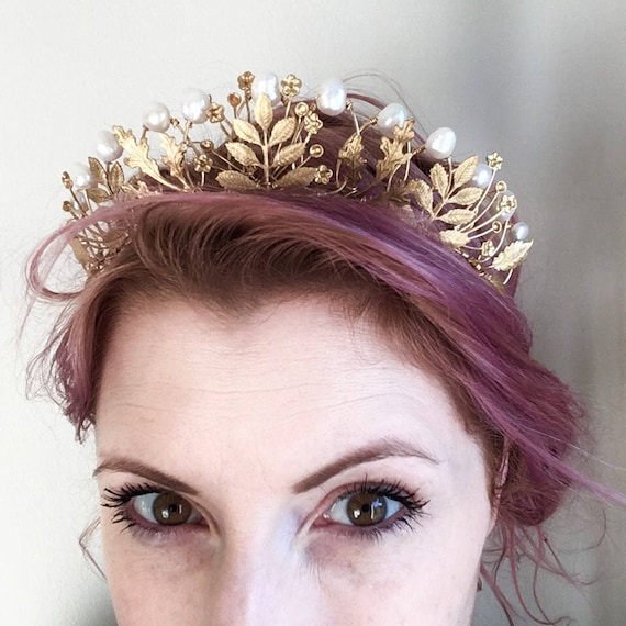 The AGATHA Crown, Queen, Tudor, Renaissance, Pearl, Leaf, Leaves, Pearls, Princess, Tiara, Prom, Festival, Game of Thrones, Gold, Floral - Etsy