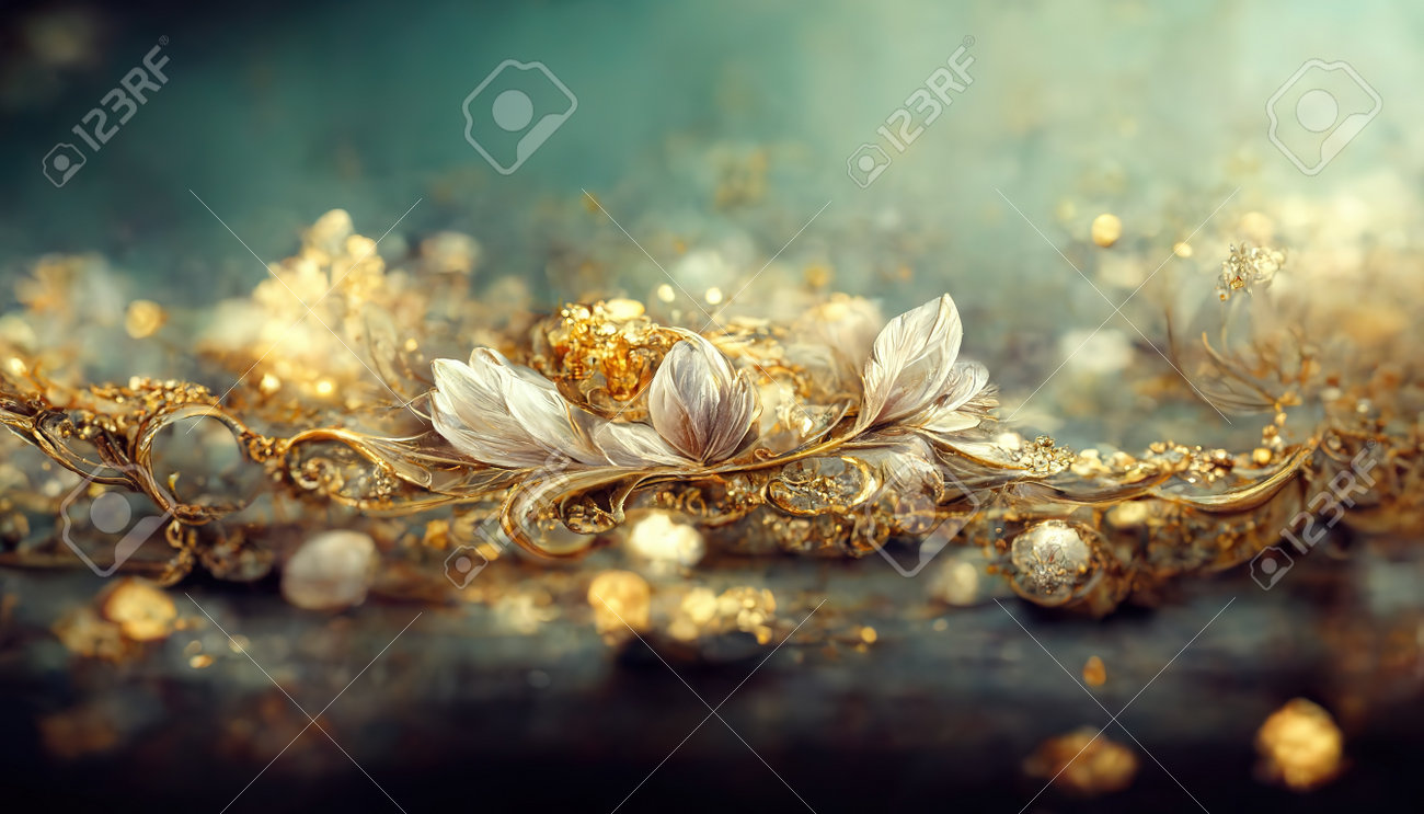 Zarter, Fabelhafter Türkisfarbener Luxushintergrund Mit Magischen Blumenjuwelen Und Lichteffekten. 3D-Illustration. AI Rendern Lizenzfreie Fotos, Bilder und Stock Fotografie. Image 201809968.