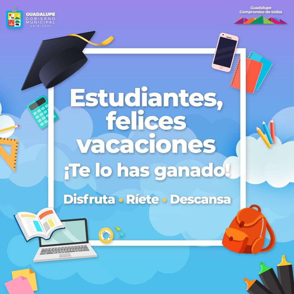 Municipio de Guadalupe on X: "Les deseamos alumnos y personal educativo unas felices y merecidas vacaciones. Reconocemos su esfuerzos y compromiso en este ciclo escolar que finaliza. ¡Excelente #Viernes! https://t.co/POSVccduUC" / X