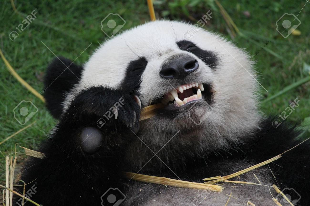 Verspielter Panda Bao Liegt Auf Dem Holzbett Und Isst Bambusblätter - Stockfotografie: lizenzfreie Fotos © [email protected] 646027096 | Depositphotos