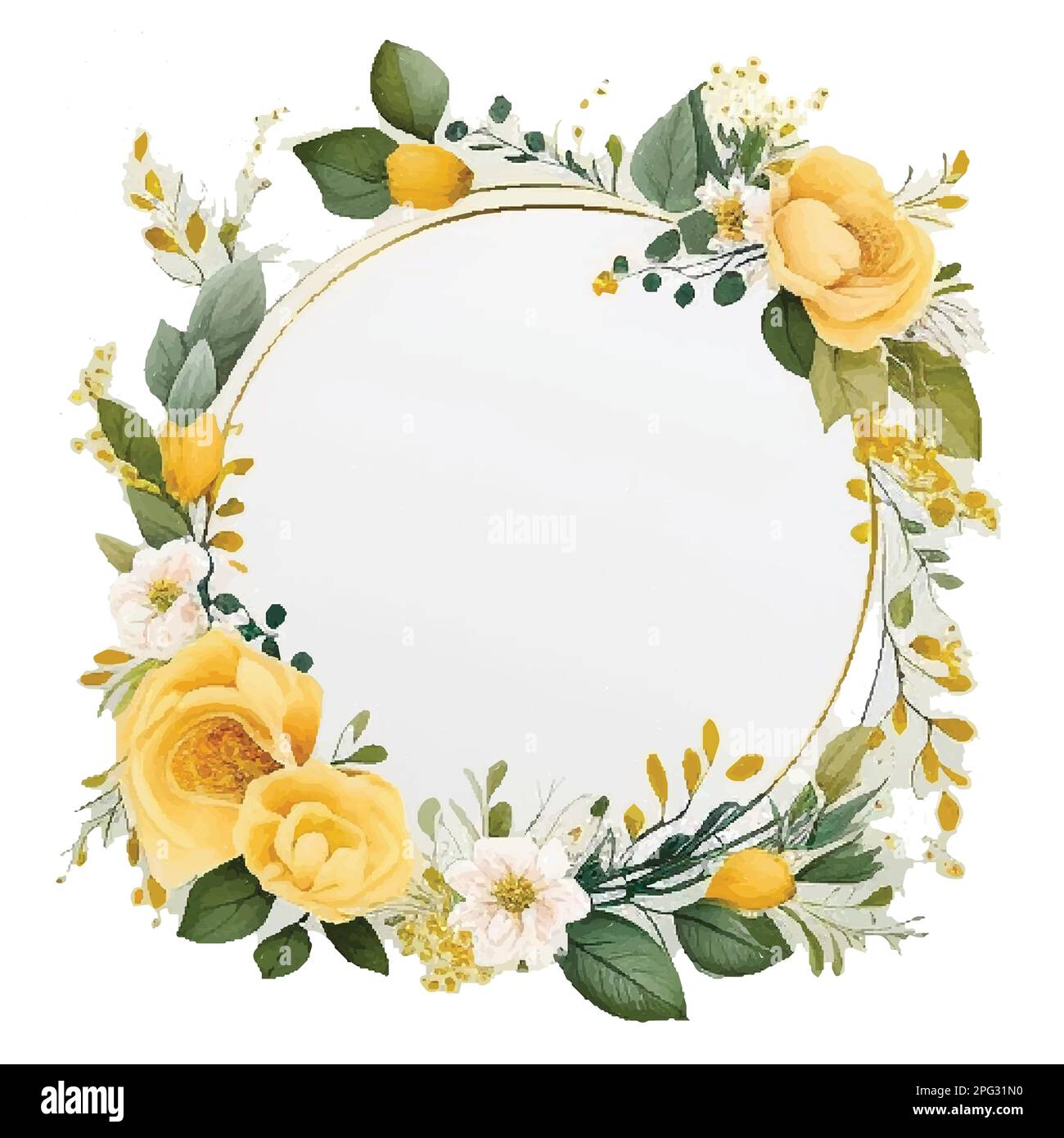 Dekorative klassische gelbe Rosen und Knospen mit Blättern in quadratischer Form. Vektorset mit Blüten für dein Design. Verzierung für Hochzeitseinladungen Stock-Vektorgrafik - Alamy