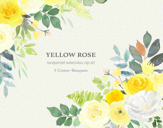 Gelbe Rose Clipart Kränze Aquarell Floral ClipArt Arrangements für DIY Hochzeitseinladungen, digitale Scrapbooking und vieles mehr - Etsy.de