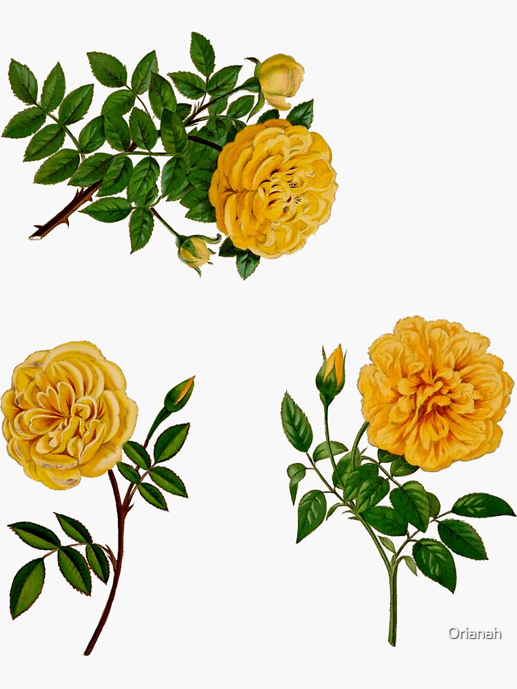 Sticker for Sale mit "Schöne Vintage Rose Zeichnungen, gelbe Rosen, antike Rose Zeichnungen, Vintage gelbe Rosen, Vintage Blumen." von Orianah | Redbubble