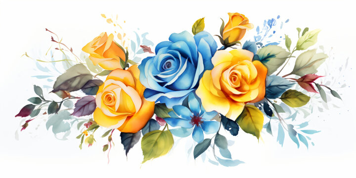 Drei Schöne Gelbe Rosen Mit Dem Blauen Band. Isoliert Auf Dem Weißen Hintergrund. Lizenzfrei nutzbare SVG, Vektorgrafiken, Clip Arts, Illustrationen. Image 50998799.
