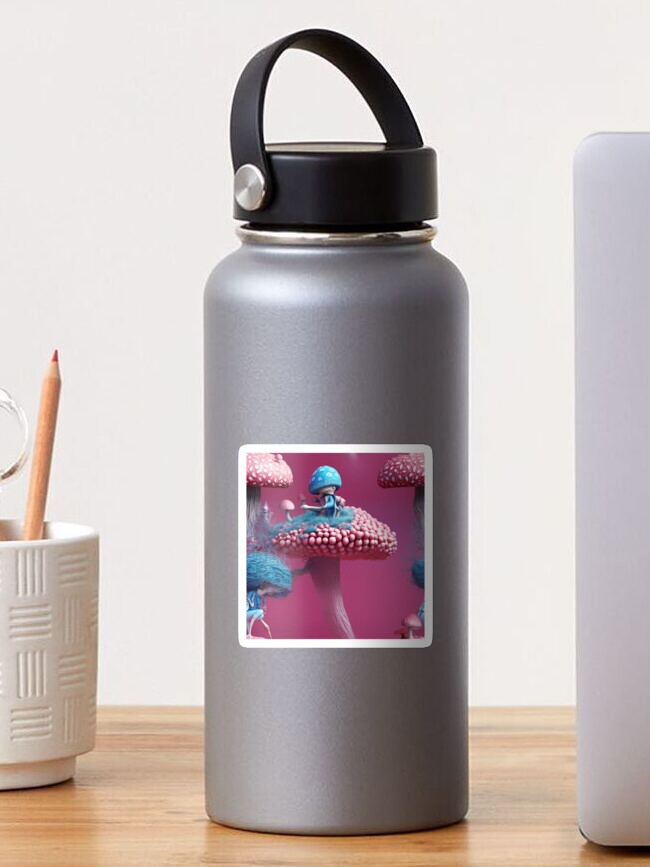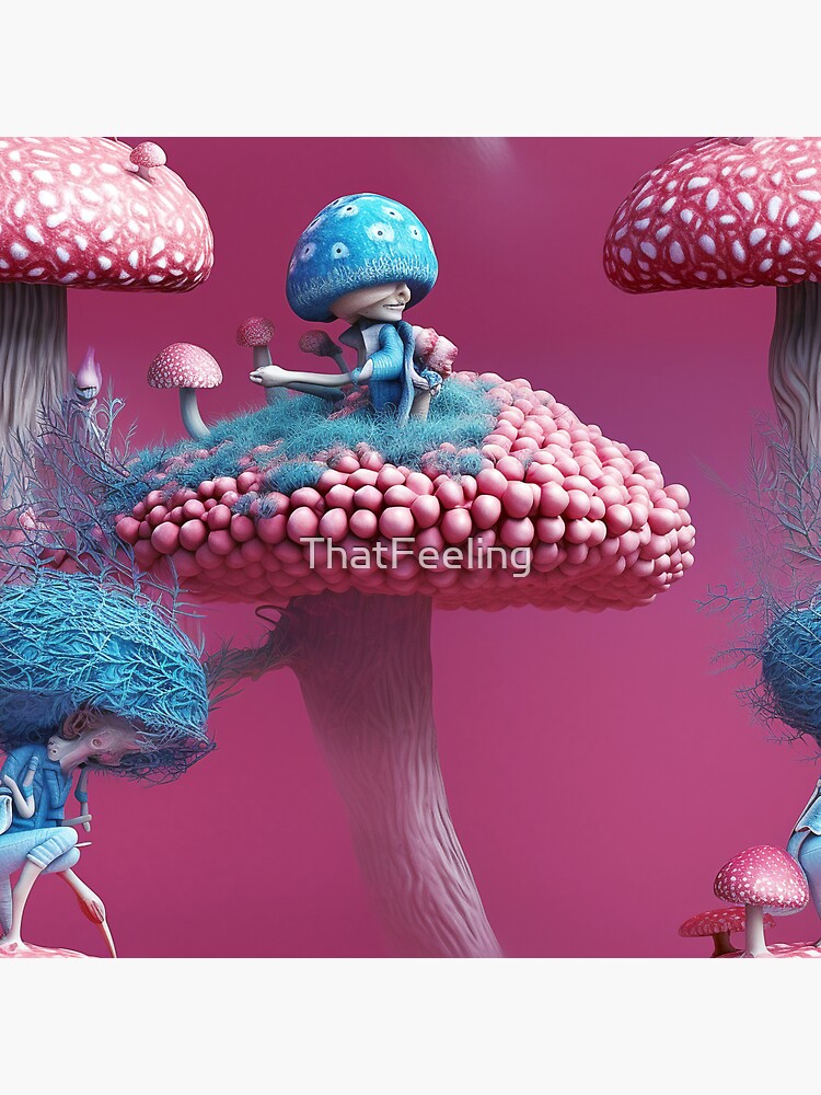 Sticker for Sale mit "Mushroom Fairy Riding Wild ist eine blaue Fee, die auf einem rosa Pilz reitet, ein surreales Fantasiewesen" von ThatFeeling | Redbubble