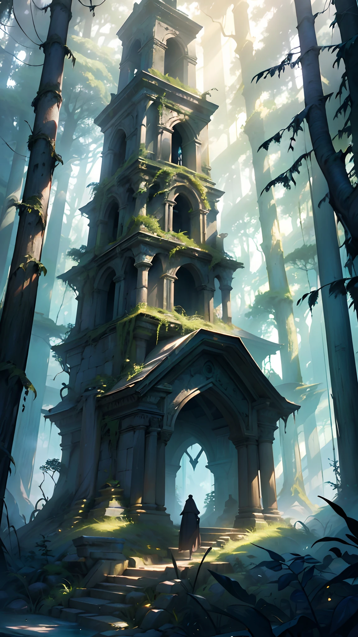 Eine hohe Auflösung,ultradetailliert,Meisterwerk:1.2),Wald voller Fantasiewesen,Gruselige Ruinen - SeaArt AI