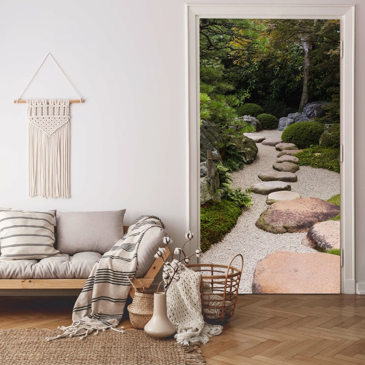Türtapete Japanischer Zen Garten, Steine, Pflanzen Sticker für Türen, | eBay