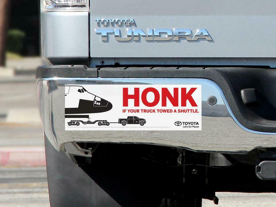 This was on the bumper of the Toyota Tundra towing the Space ...