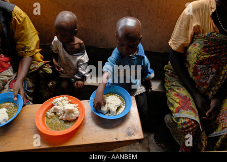 Vertriebene kongolesische Kinder essen in einem von der ...
