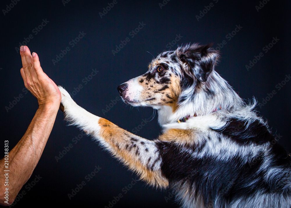 Lustiger Australian Shepherd gibt Pfote Stock Photo | Adobe Stock