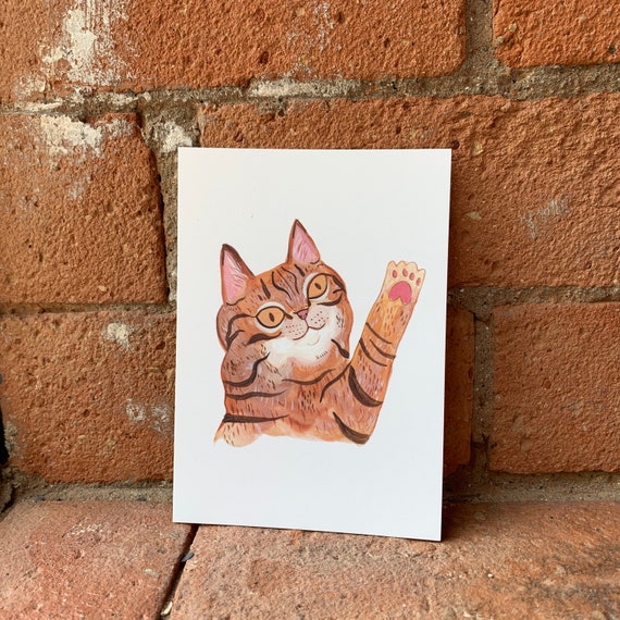 High Five Getigerte Katze Grußkarte süße Katze Illustration, Glückwunschkarte, gut gemacht, Tierkarte, innen leer, kleine A6 Karte - Etsy.de