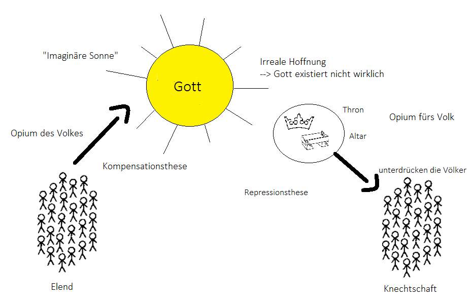 Karl Marx Theorie zum Atheismus. Kann mir jemand das Bild erklären?