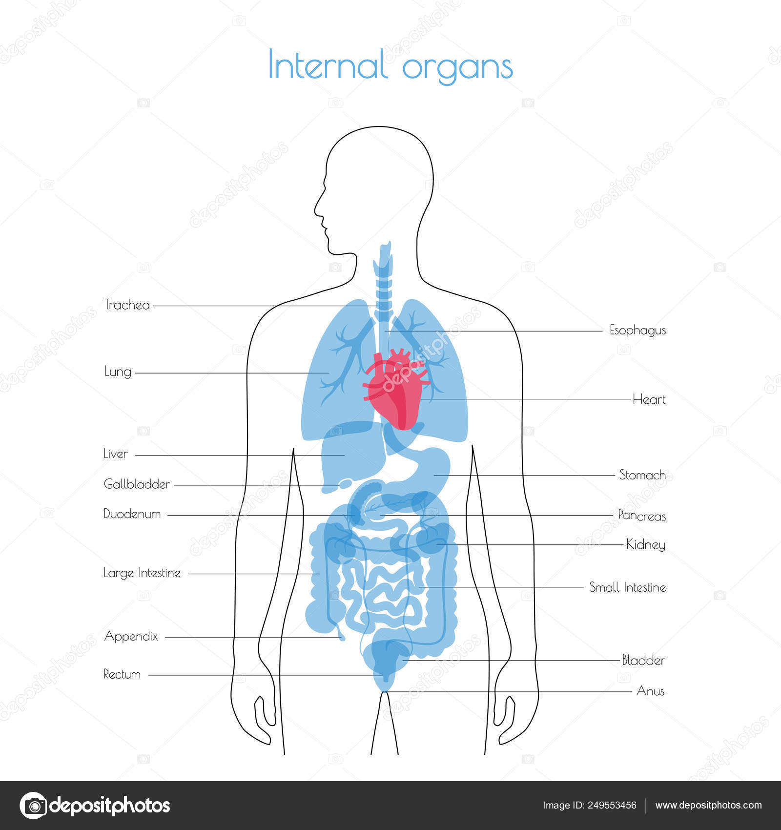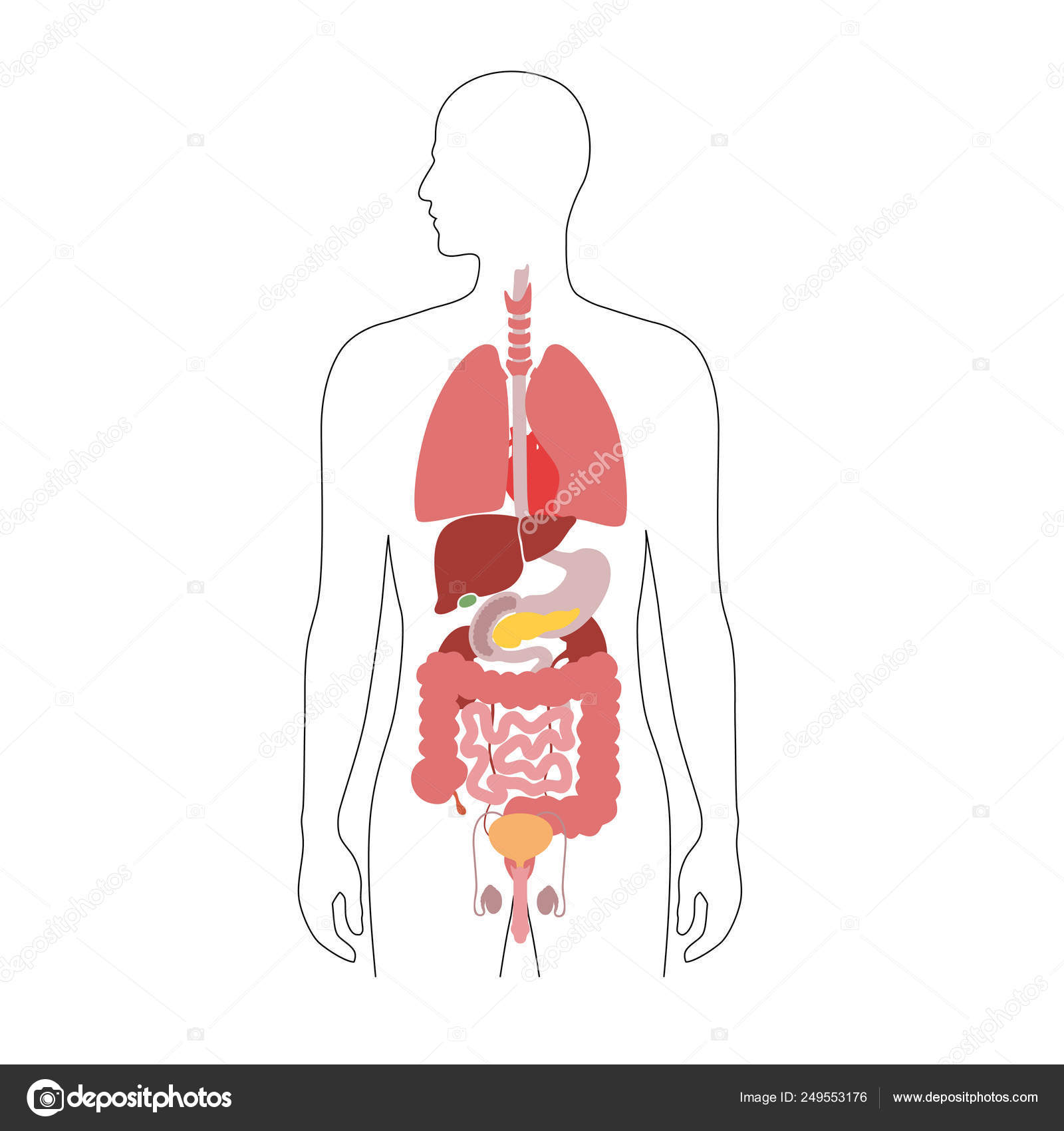 Vektor Isolierte Darstellung Der Menschlichen Inneren Organe Im Männlichen Körper. Magen, Leber, Darm, Blase, Lunge, Hoden, Gebärmutter, Wirbelsäule, Bauchspeicheldrüse, Niere, Herz, Blasensymbol. Medizinisches Poster Des Spenders Lizenzfrei nutzbare ...