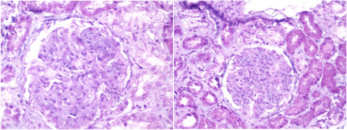 Renal biopsy (H and E, ×400) revealed mesangial proliferative... | Download Scientific Diagram