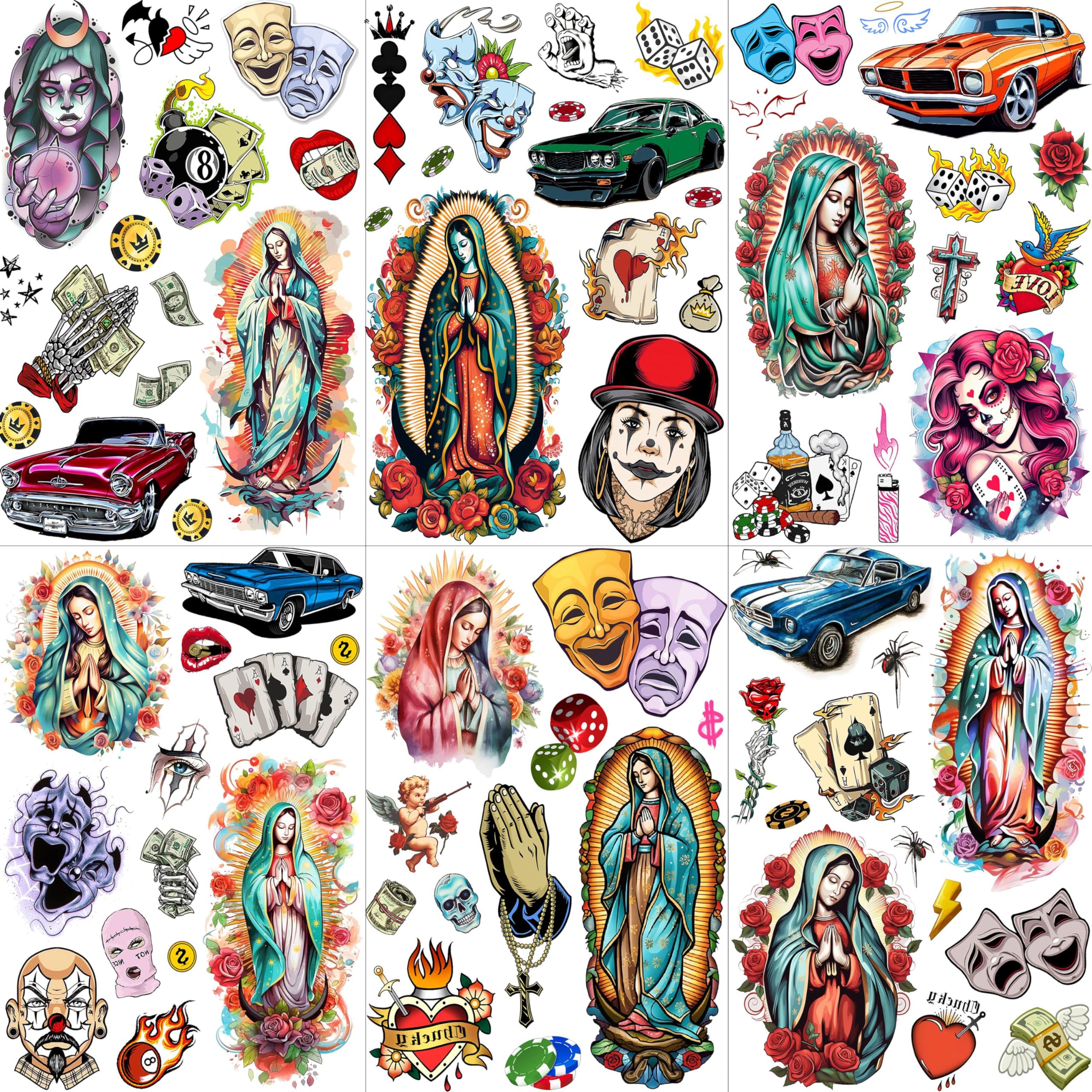 Los Vatos Chicano Vol. II - 36 Designs - Cholo Chola Temporary Tattoos For Men Women, Payasa, Lowrider, Virgin Mary, Prayer, Cross, Chicana, Gangster, ...