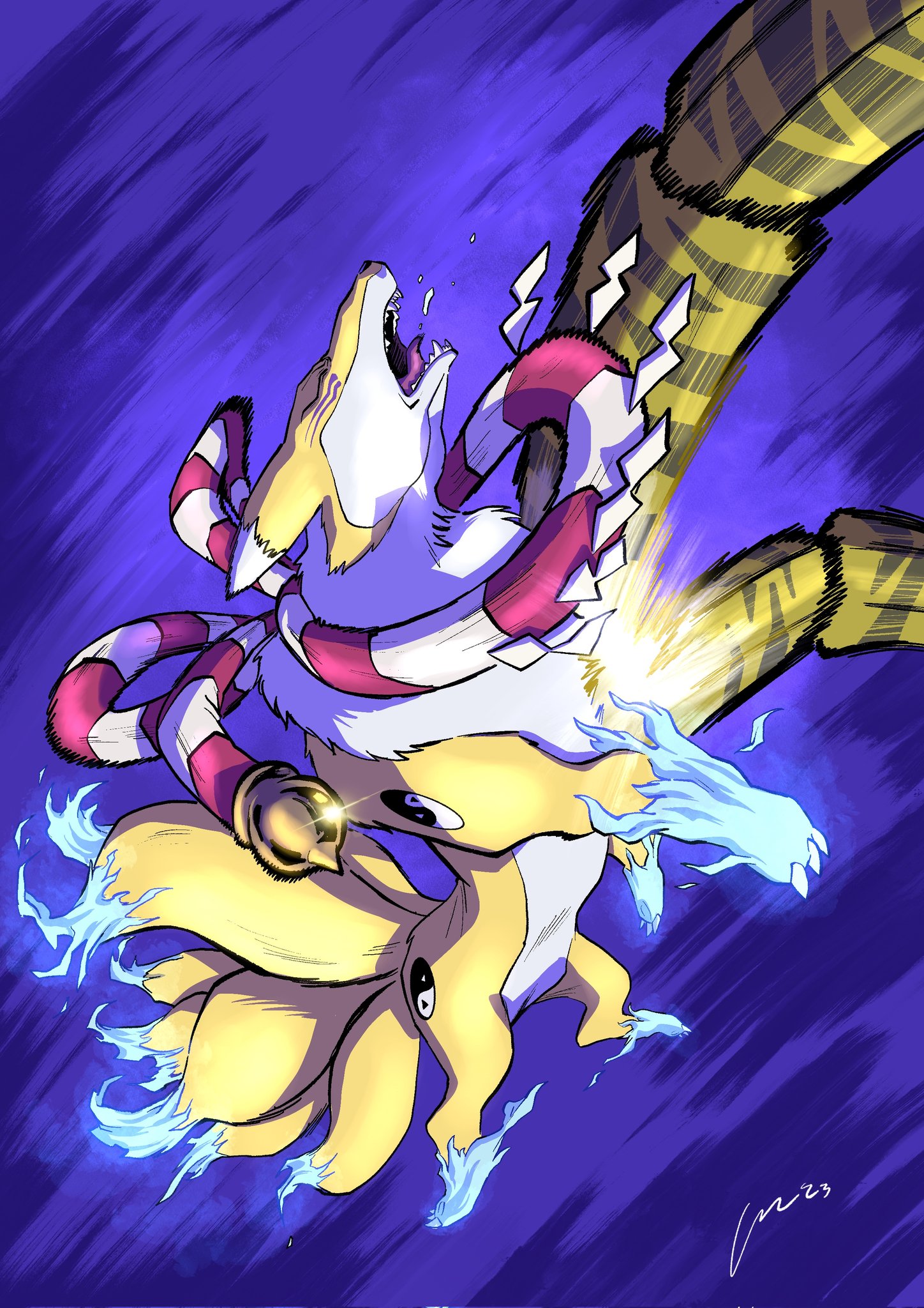 Carlo 🐸 COMMISSIONS OPEN!!🚨 on X: "Digimon commission Kyubimon vs Mihiramon from Digimon Tamers , based on a frame from the series #Digimon #digimontamers https://t.co/RssZr0cLTt" / X