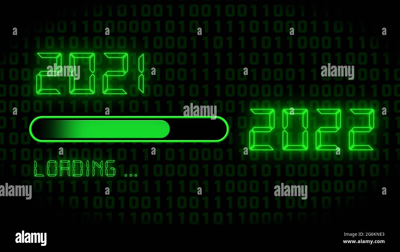 Jahreswechsel 2022 - Fortschrittsbalken, der das Laden des neuen Jahres vor dem digitalen Hintergrund anzeigt - grafische Elemente und Jahresziffern in grüner Farbe Stockfotografie - Alamy