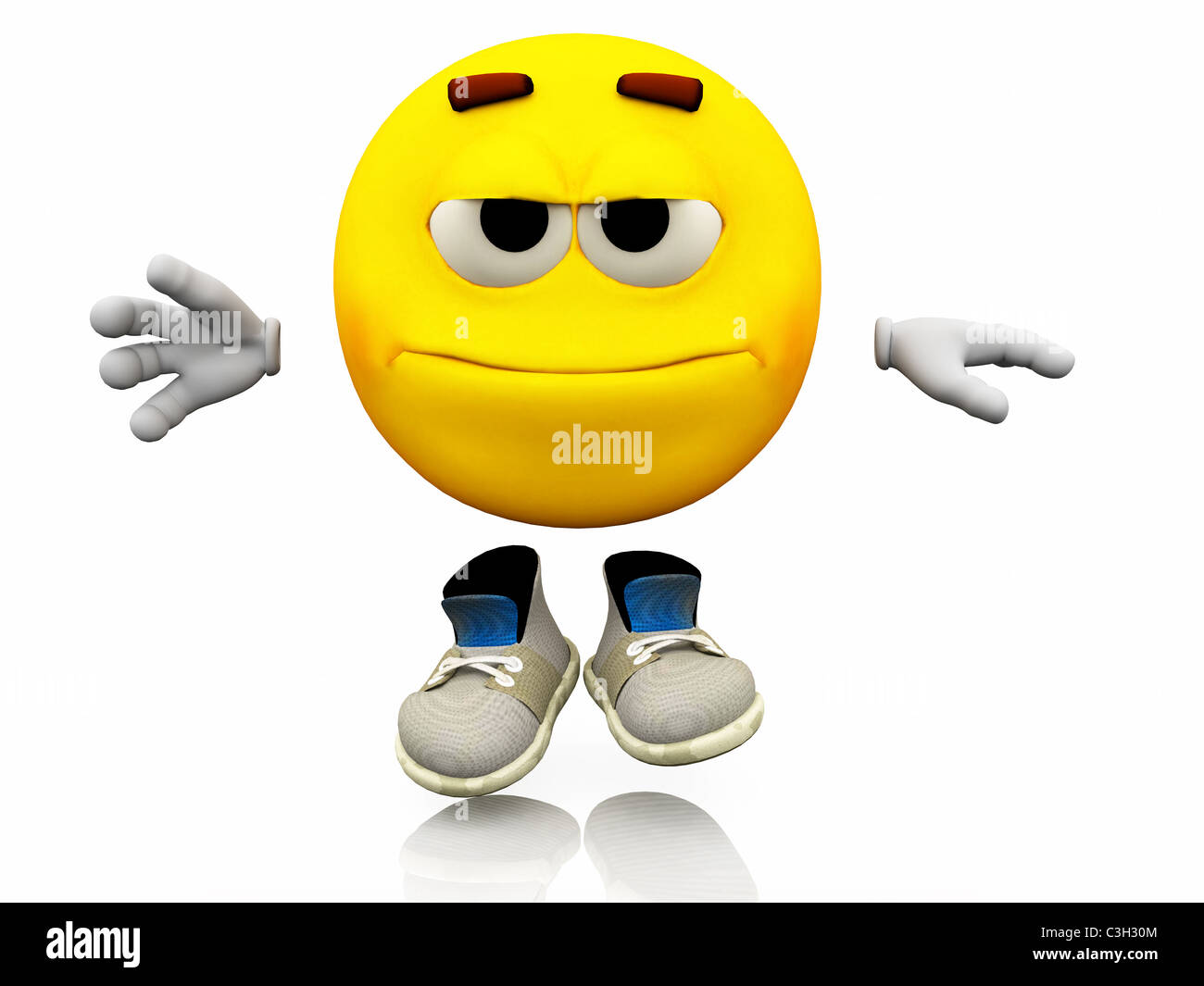 Smiley emoticon,. L'espressione del viso. Posizione neutrale espressione emotiva su una faccia di colore giallo con grandi occhi con scarpe Foto stock - Alamy