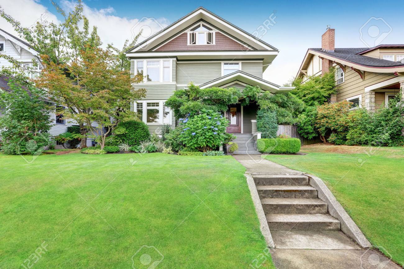 Amerikanische Familie Haus Außen Mit Perfekt Gepflegten Rasen .Northwest, USA Lizenzfreie Fotos, Bilder und Stock Fotografie. Image 61647367.