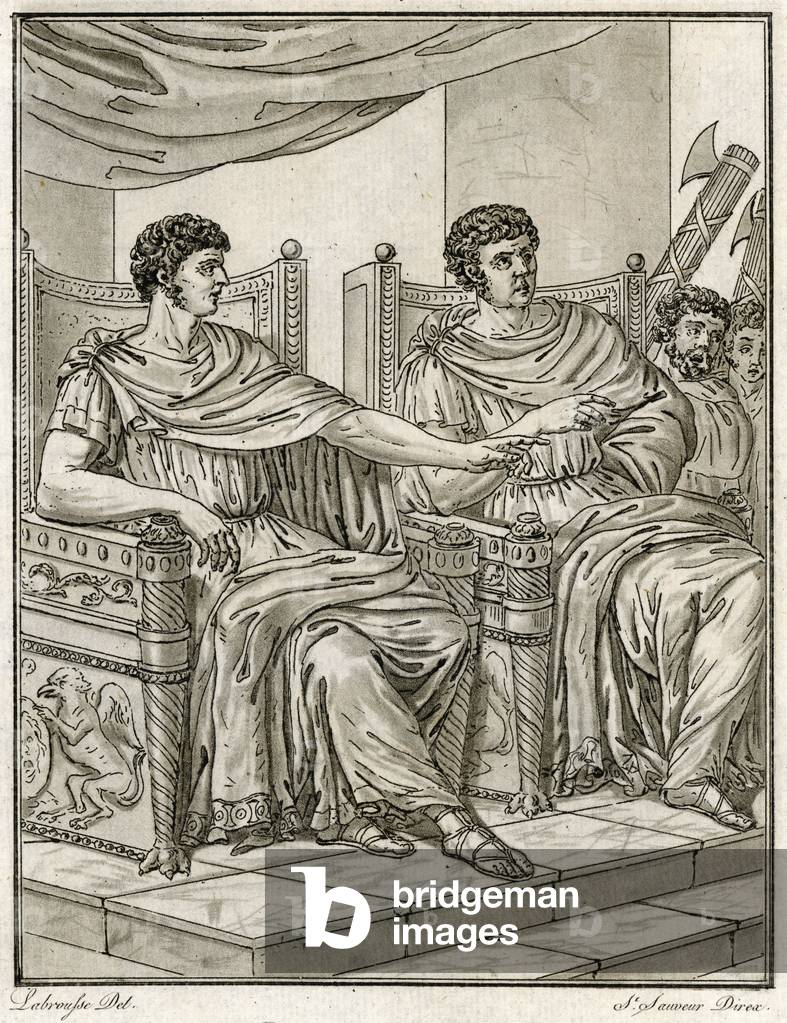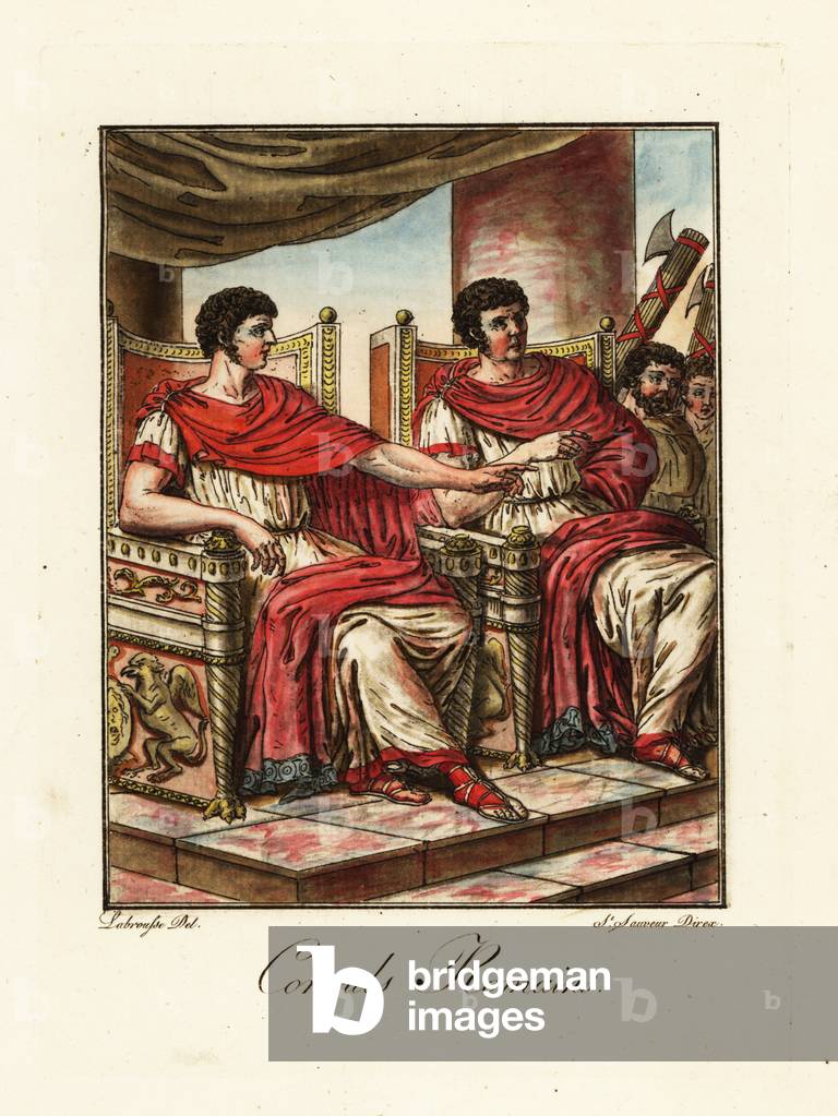 Image of Zwei römische Konsuln sitzen auf Thronen im antiken Rom ...