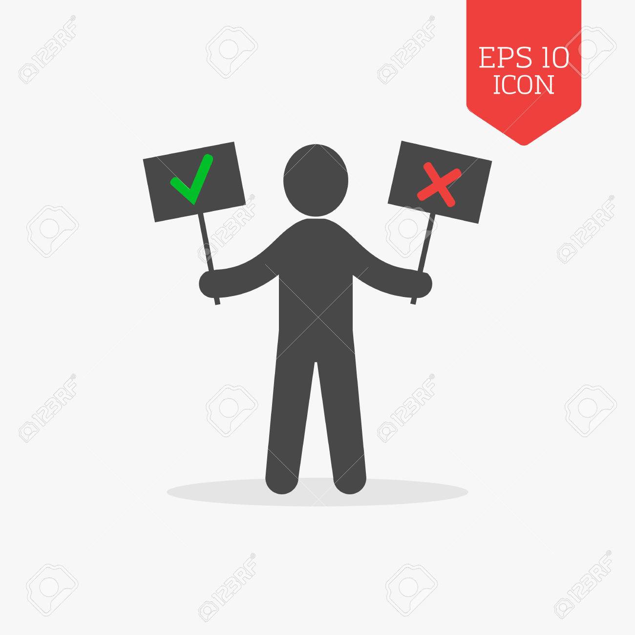 Man Hält Richtig Und Falsch Zeichen-Symbol. Flaches Design Graue Farbe Symbol. Illustration Element Lizenzfrei nutzbare SVG, Vektorgrafiken, Clip Arts, Illustrationen. Image 59889036.