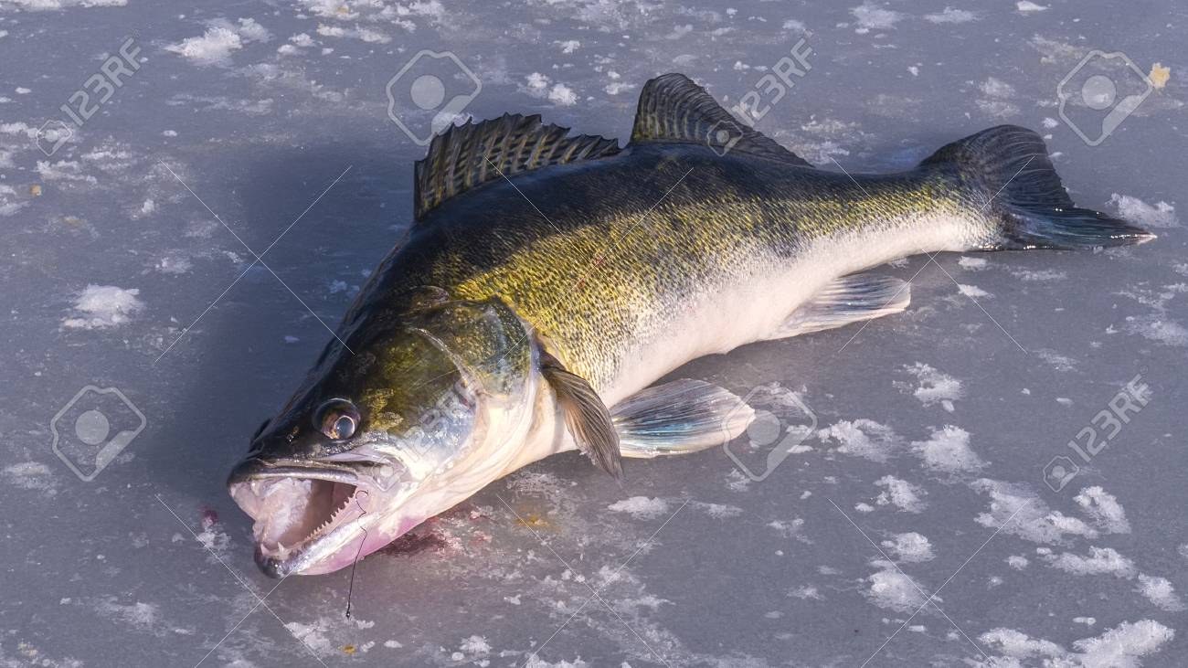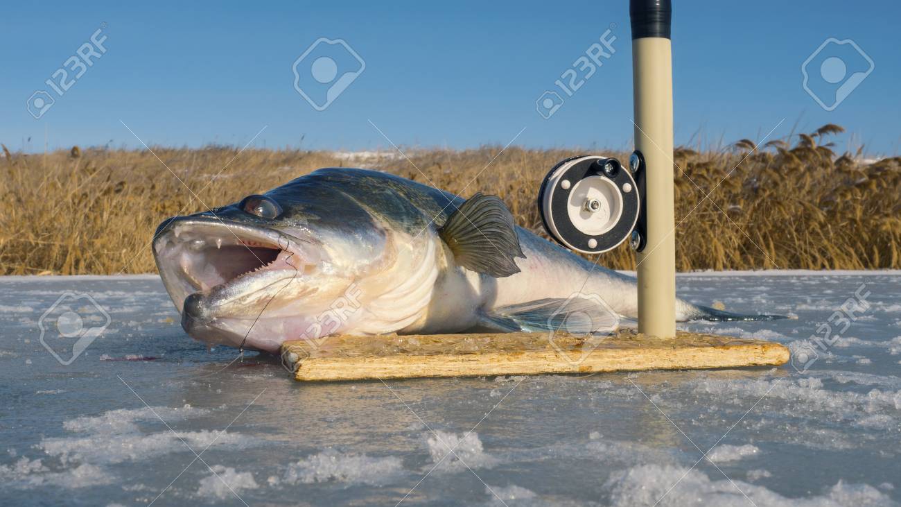 Der Riesige Fisch Und Tackle Zum Angeln Auf Dem Eis. Großer Zander. Lizenzfreie Fotos, Bilder und Stock Fotografie. Image 72360561.