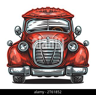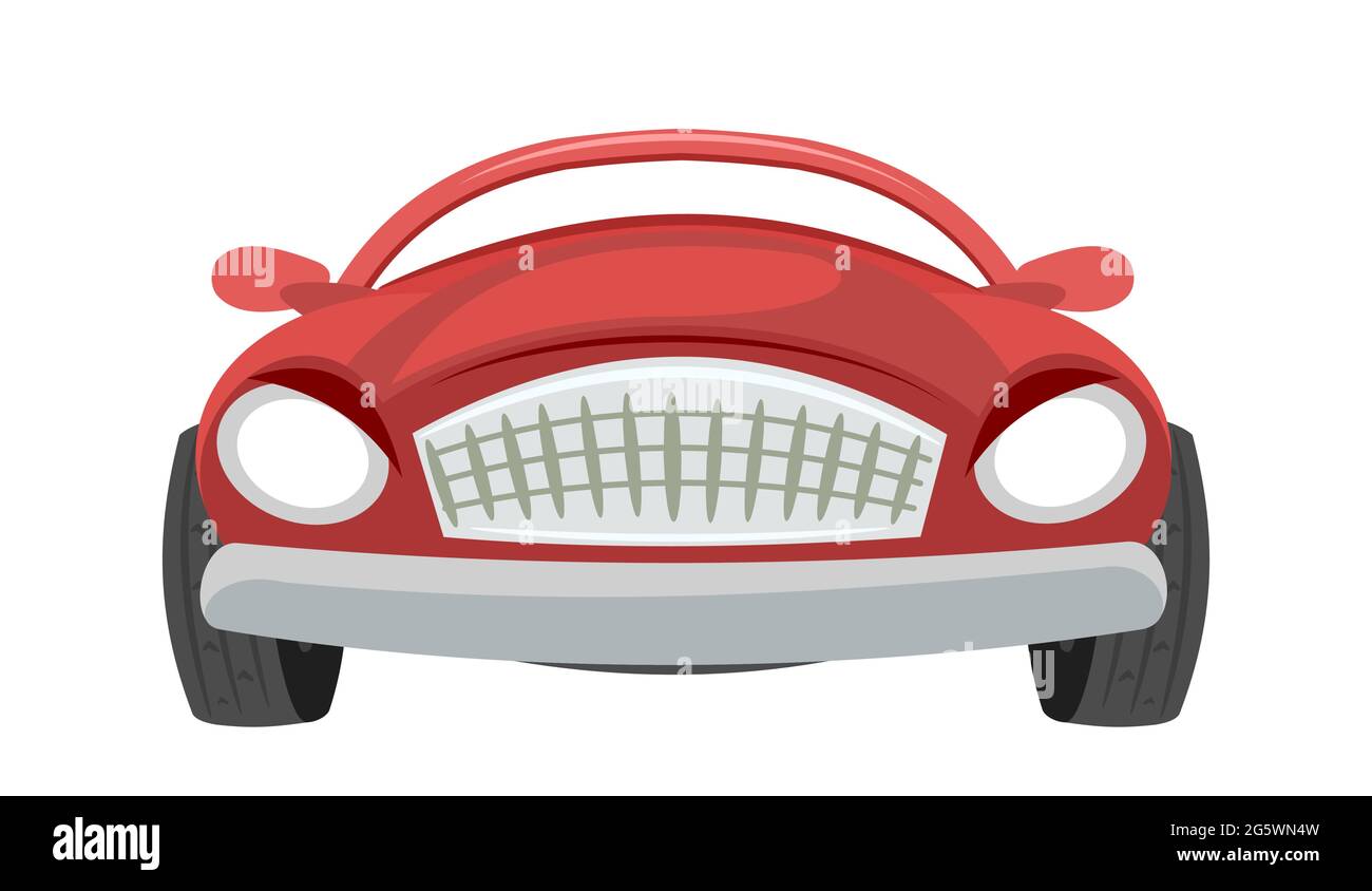 Auto. Cartoon Comic lustigen Stil. Vorderansicht. Rotes Automobil. Auto in flachem Design. Cabriolet. Illustration für Kinder. Isoliert auf weißem Hintergrund Stock-Vektorgrafik - Alamy