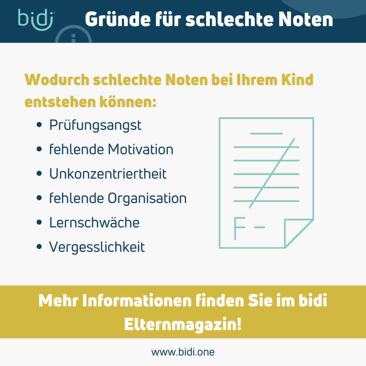 Mein Kind hat schlechte Noten in der Schule: mögliche Ursachen und Tipps für Eltern - Kopf Körper Schule