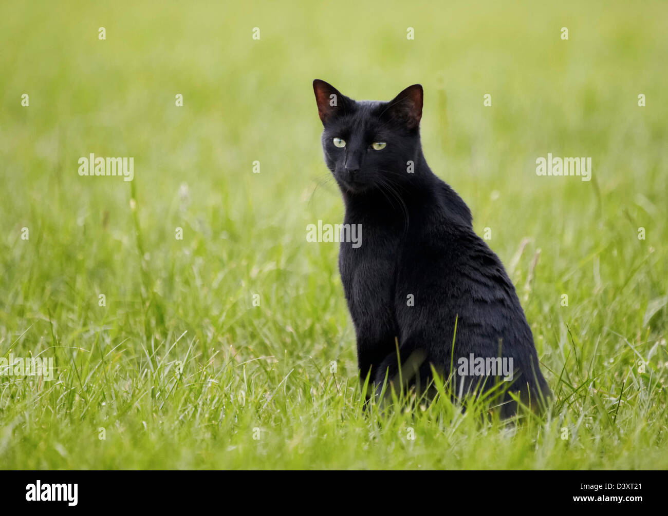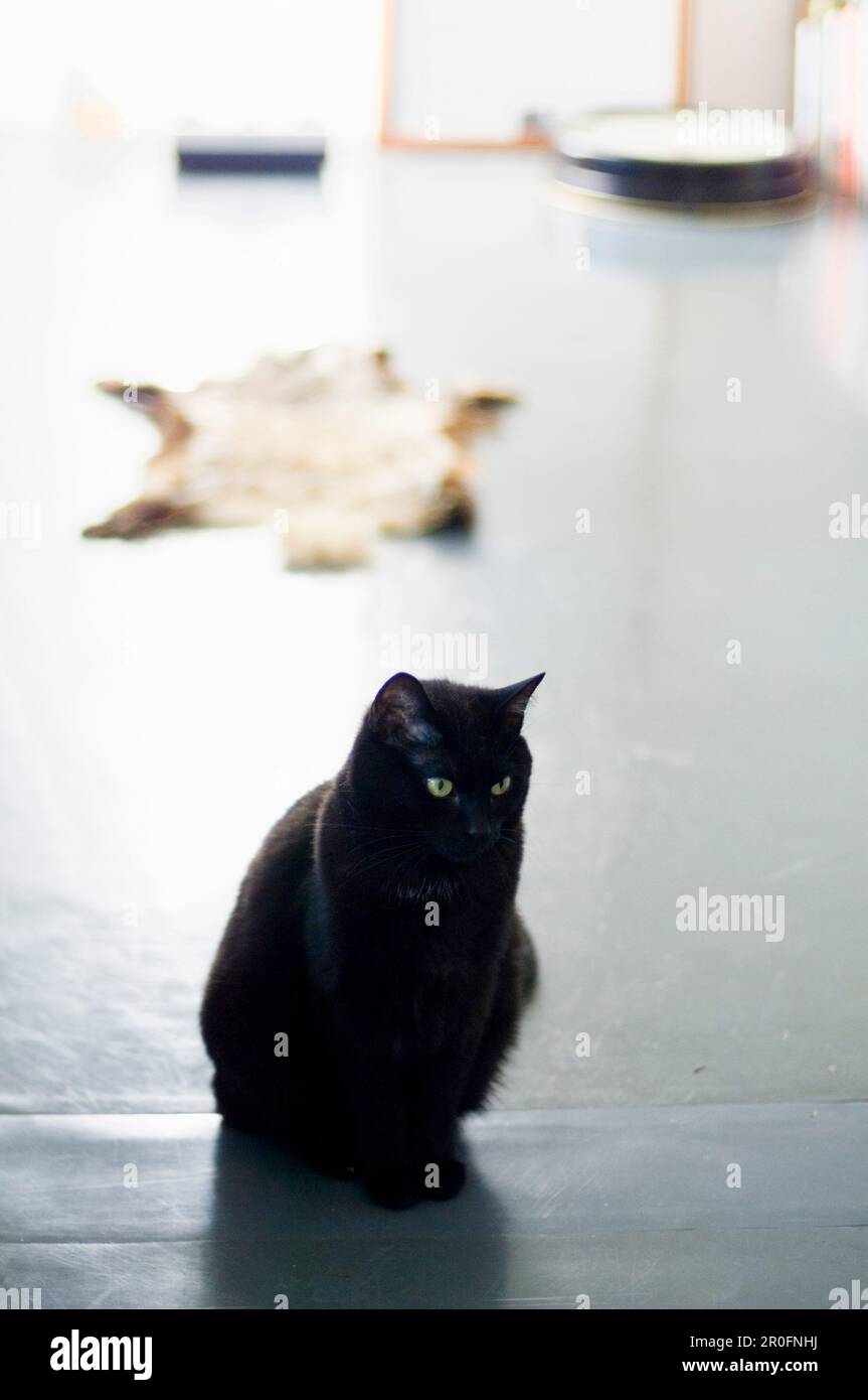 Schwarze Katze sitzt auf dem Boden Stockfotografie - Alamy