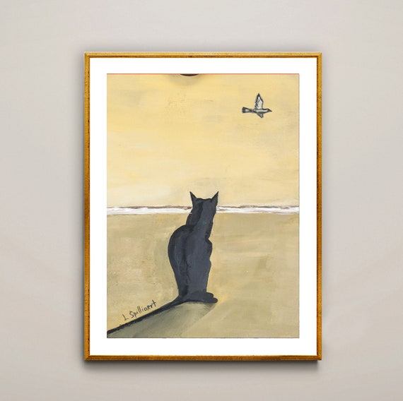 Eine schwarze Katze sitzt am Strand mit einem Vogel, der über Kopf fliegt von Leon Spilliaert Fine Art Print Tierkunstwerk, Katzenliebhaber, Cat Art Print - Etsy Österreich