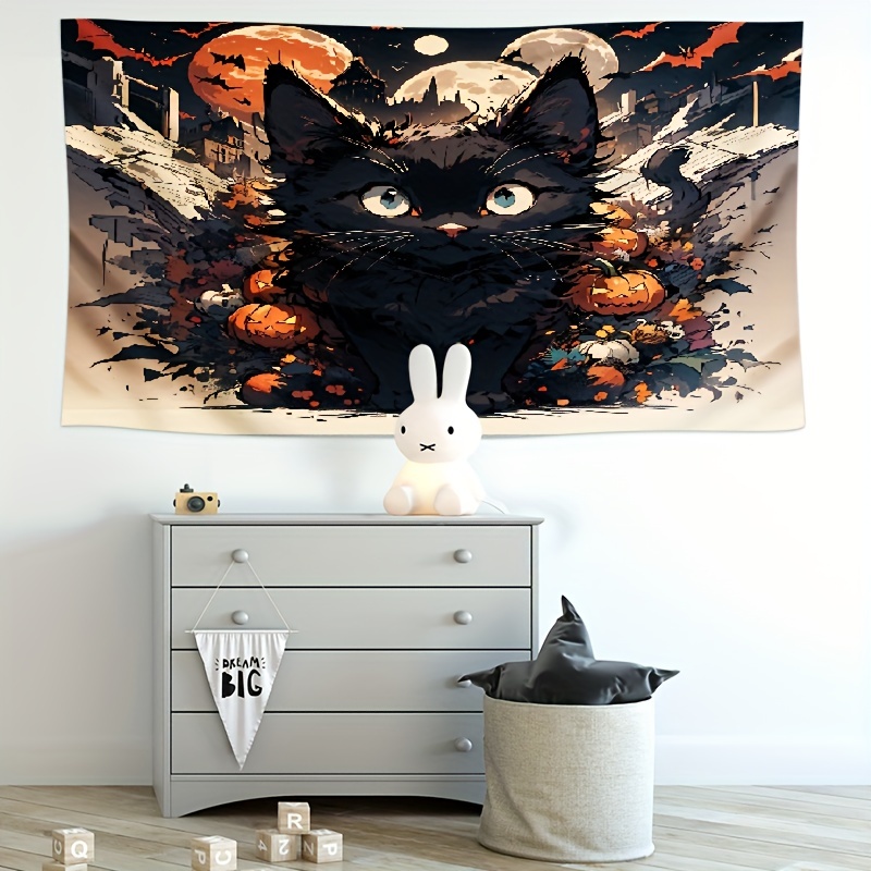 Schwarze Katze Sitzt Stapel Kürbisse Hängende Wandteppich - Temu Austria