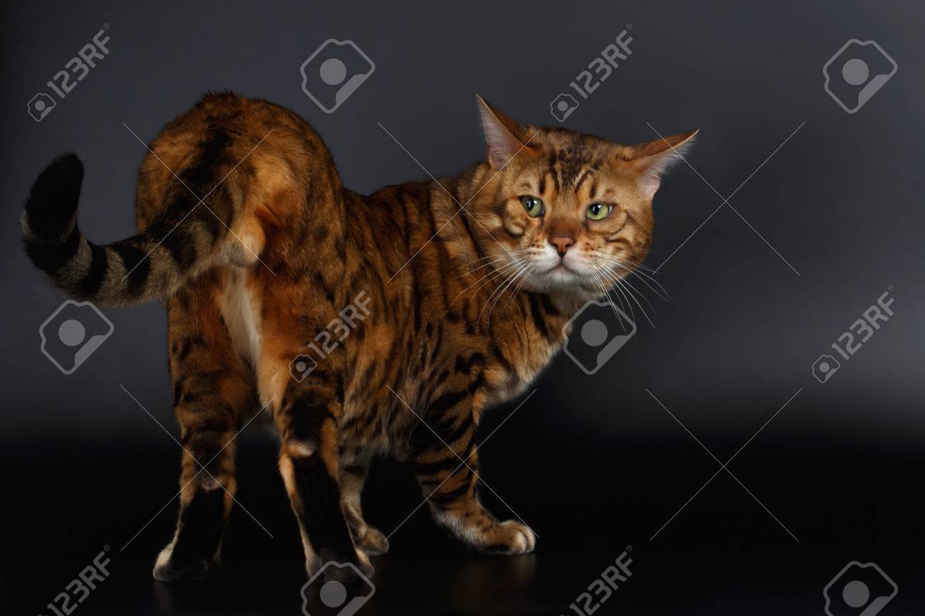 Bengal-Katze Im Rückblick Auf Seinen Schwanz Auf Schwarzem Hintergrund Lizenzfreie Fotos, Bilder und Stock Fotografie. Image 39535873.