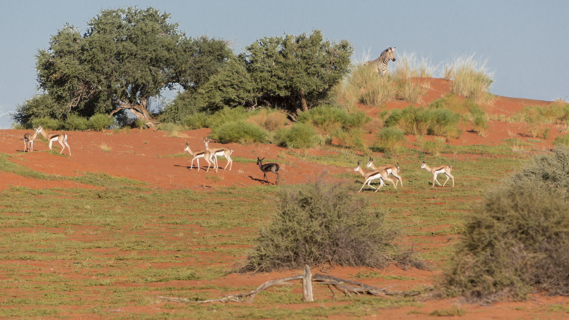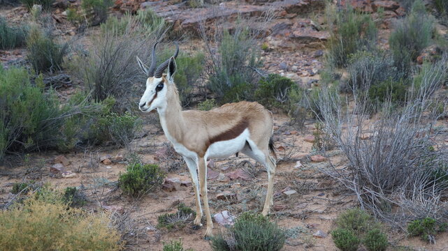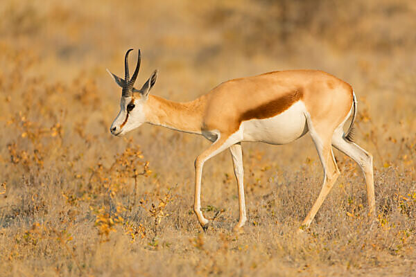 Bildagentur | mauritius images | Südafrika, Kalahari, Kgalagadi Transfrontier Park, Springbock, Antidorcas marsupialis, Sprung, seitlich Afrika, Wildlife, Wildnis, Tierwelt, Tiere, Tier, Wildtiere, Wildtier, Säugetiere, Säugetier, Paarhufer, Hornträger ...