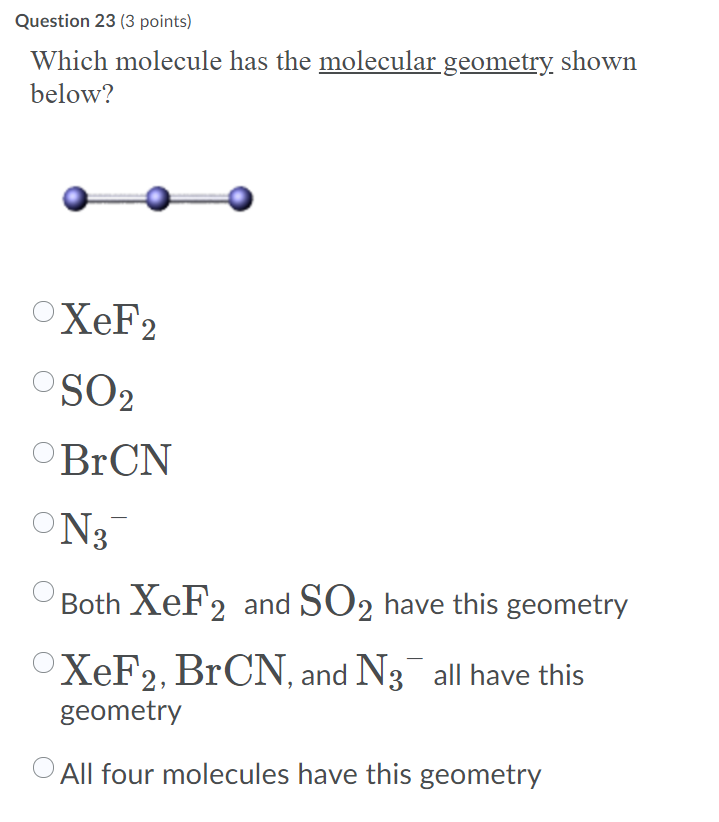 Solved Which molecule has the molecular geometry. shown | Chegg.com