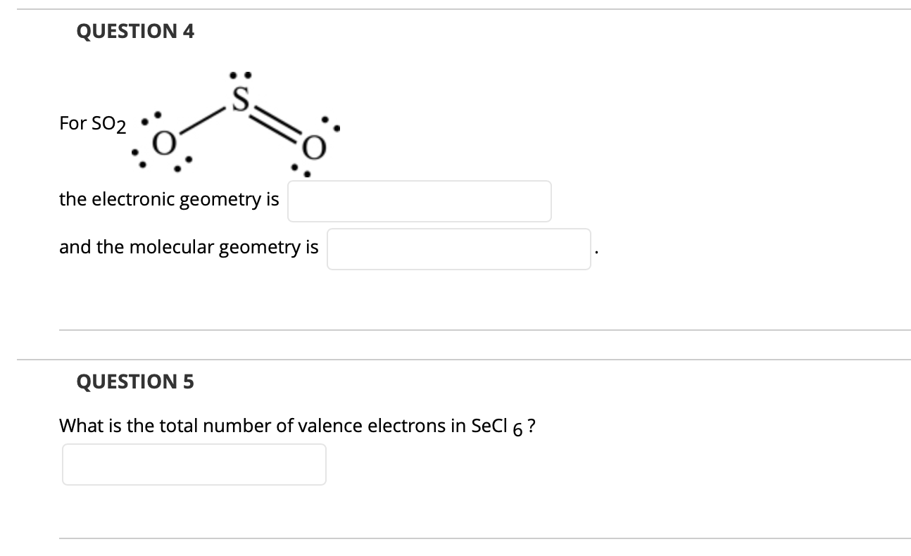 Determine the following for SO2. a. Electron geometry b. Molecular geometry (shape) c. Is the molecule symmetrical or asymmetrical? d. Is the molecule polar or nonpolar? | Homework.Study.com