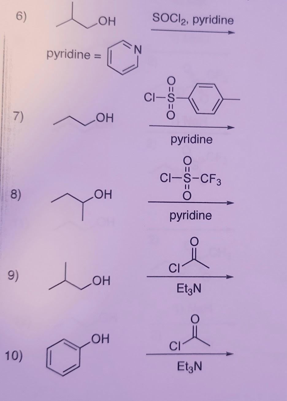 SOLVED: 12. Provide the product resulting from the following reaction: OH + SOCl2 + pyridine. 13. Provide the product resulting from the following reaction: pyridine.