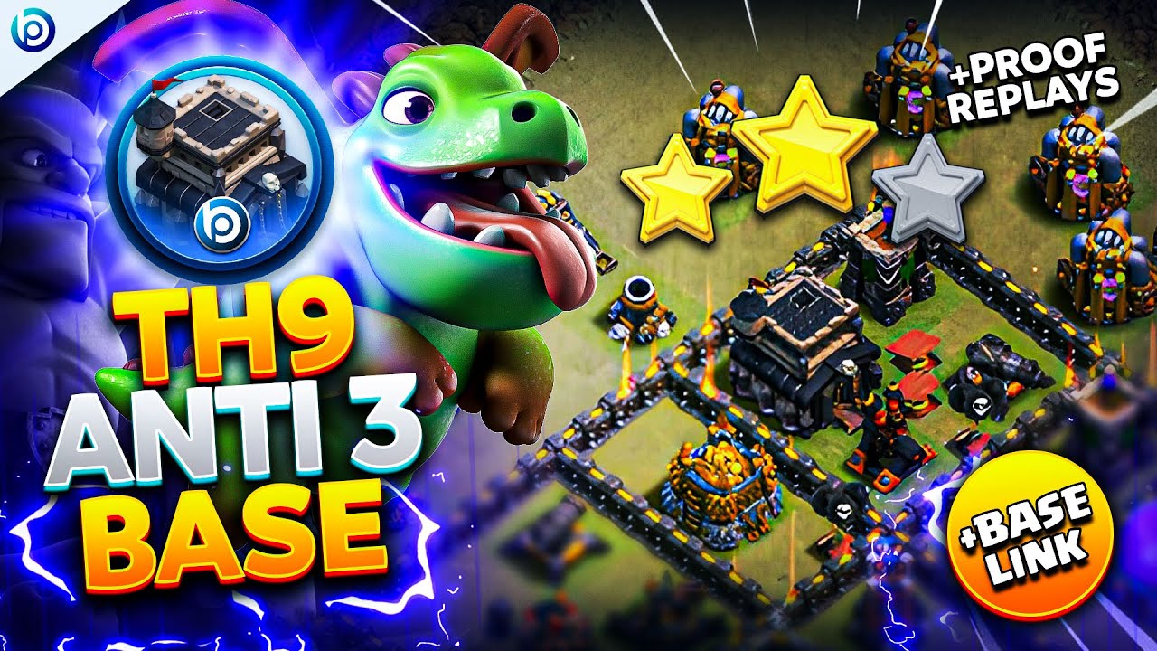The ULTIMATE TH9 ANTI 3 STAR BASE with LINK 2024 | Town Hall 9 War ...