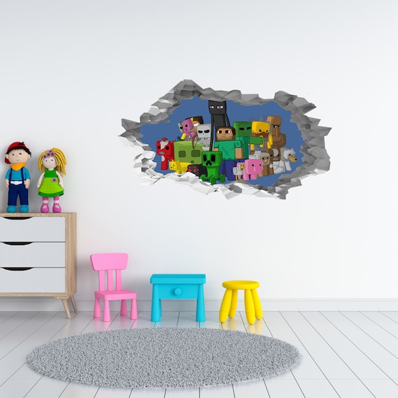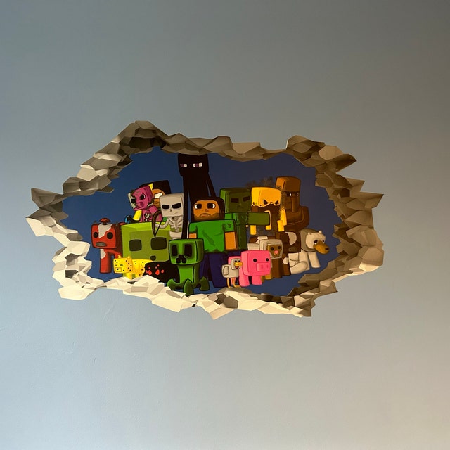 Minecraft Characters 3D Hole in the Wall Effect Self Adhesive Wall ...