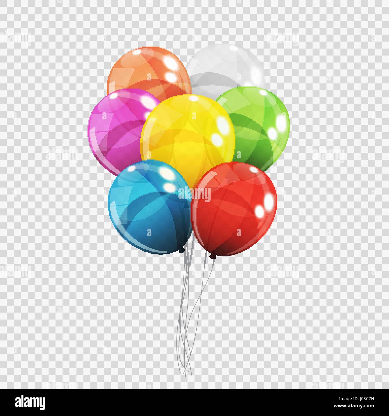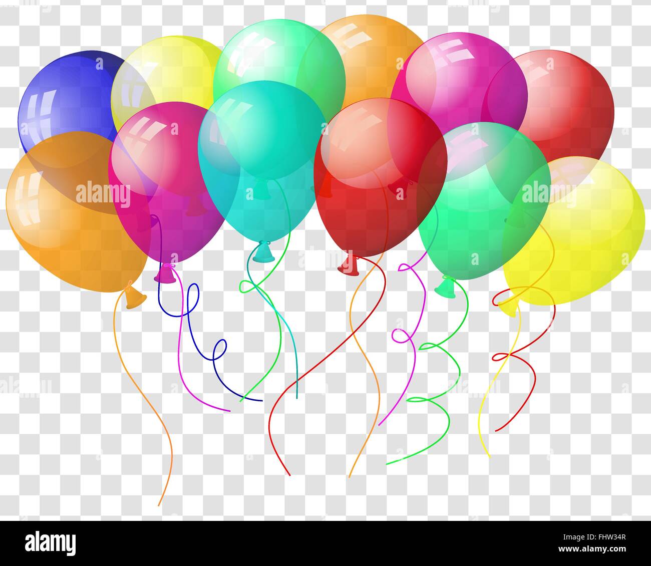 3D Прозрачные Шары День Рождения С Streamer И Конфетти, Изолированных На Белом Фоне, Легкая Смена Цвета Клипарты, SVG, векторы, и Набор Иллюстраций Без Оплаты Отчислений. Image 15684739