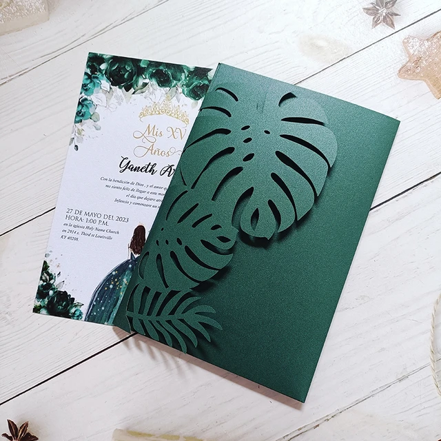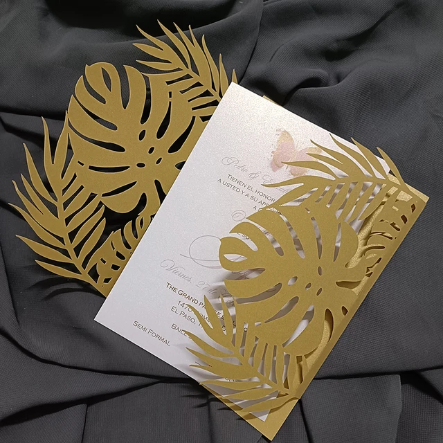 5x7 Zoll Gold tropische Falte Papier Hochzeit Einladung karte Anzug, kein inneres Blatt, kein Umschlag - AliExpress