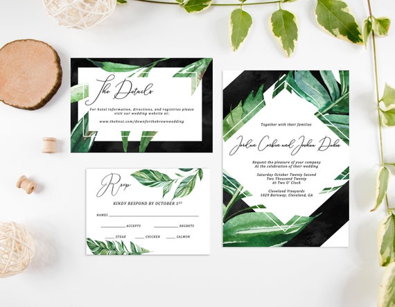 Tropische Hochzeitseinladung, Hawaii Hochzeitseinladung, Palme Blätter Einladung, Ziel Hochzeitseinladung - Etsy.de