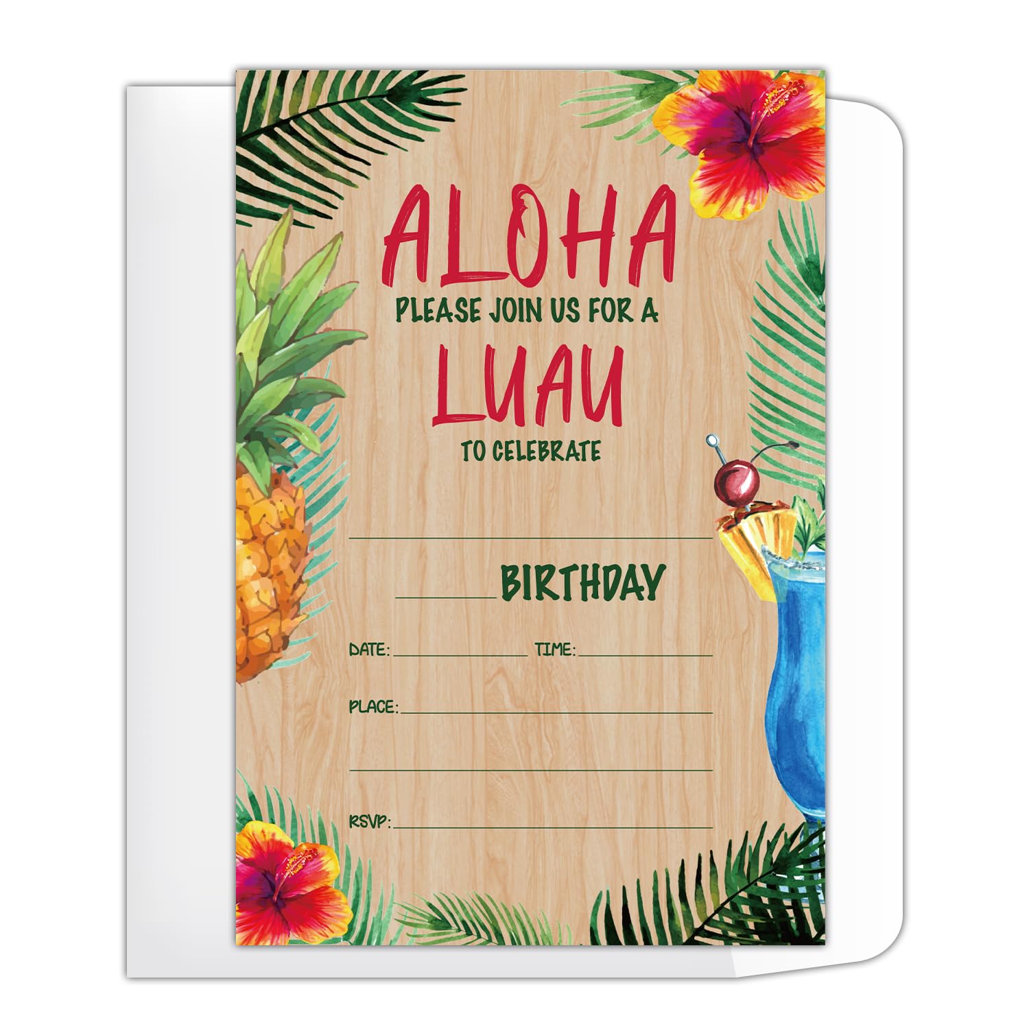 Disfuco Einladungskarten für Hawaii-Sommer-Pool-Partys, Aloha Luau Tropische Party-Einladungen – Füllen Sie die leeren Geburtstagsparty-Einladungen aus – 20 Einladungskarten mit 20 Umschlägen (d03) : Amazon.de: Küche, Haushalt & Wohnen