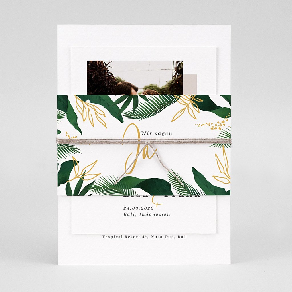 Tropische Hochzeitseinladung Gold mit Palmen-Laserstanzung und Bauchbi – cartaliastudiode