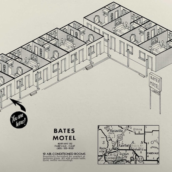 Motel Plan Inspired by the Film PSYCHO BATES Plan Psycho Hotel Map DIN A4 Original Illustration - Etsy Sweden