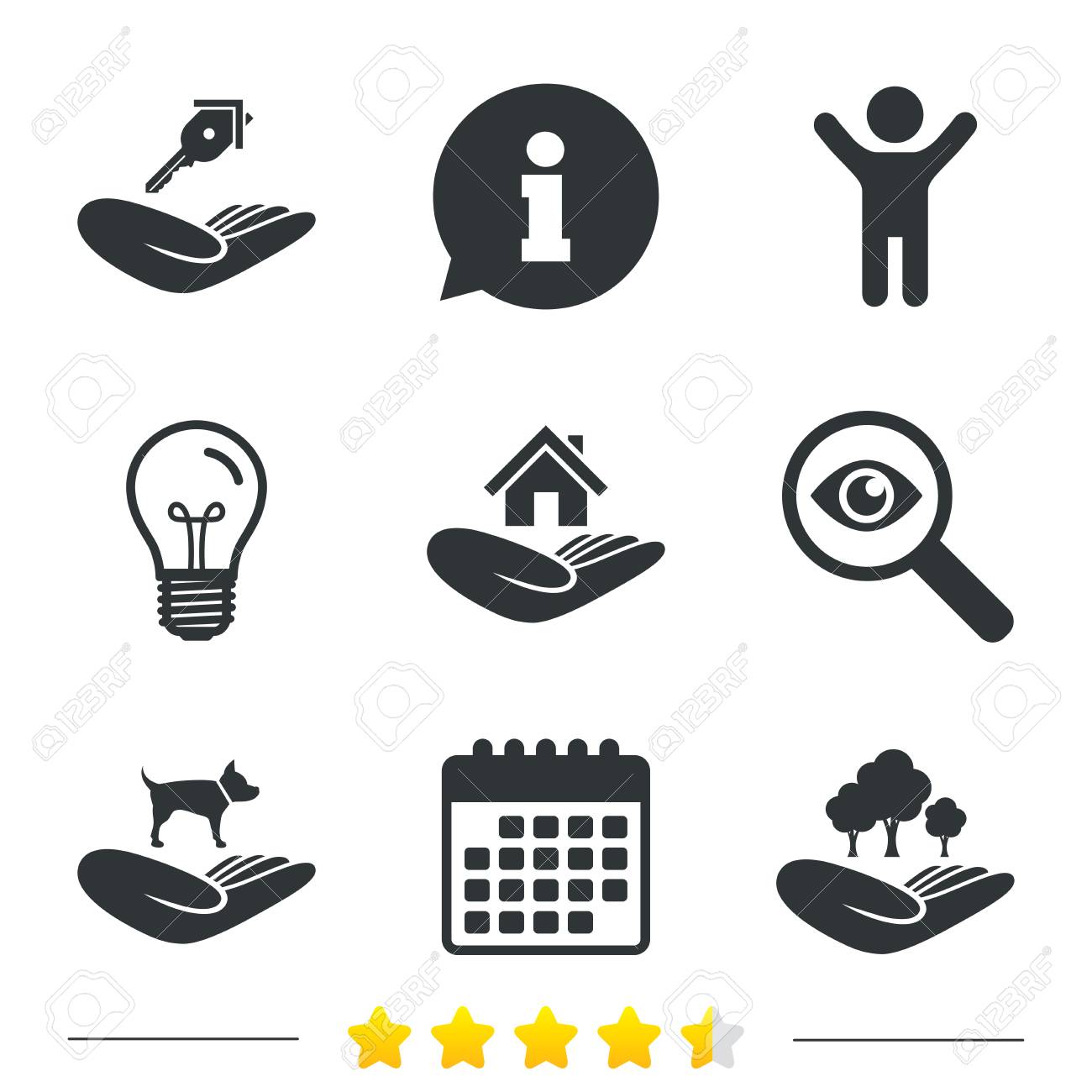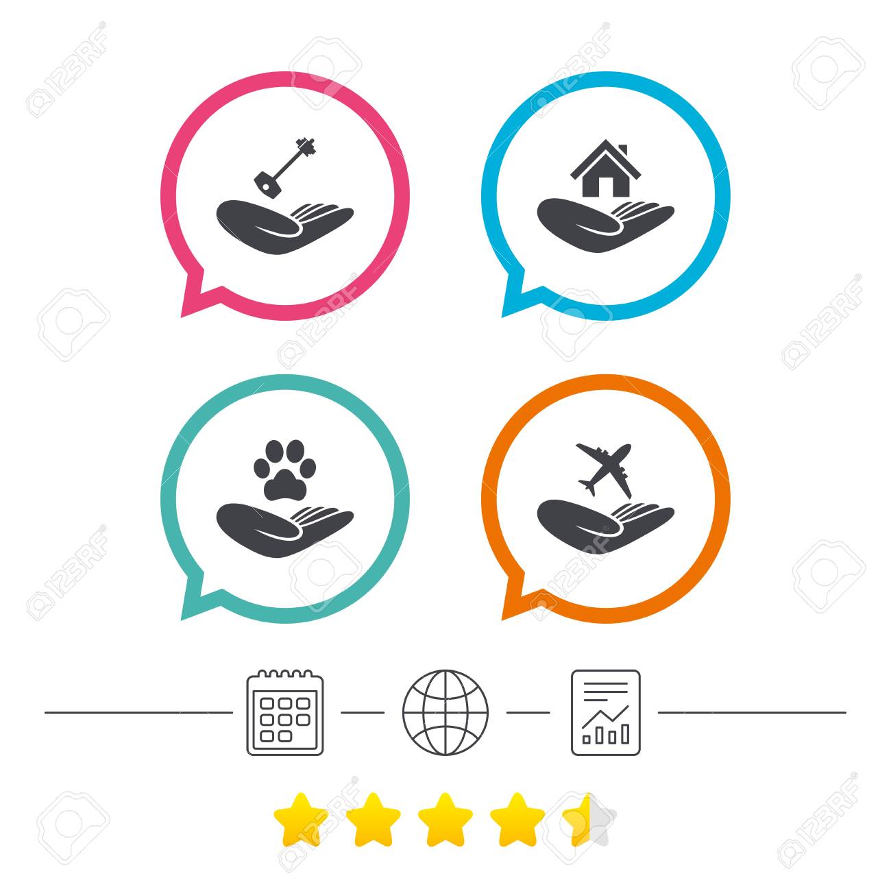 Helfende Hände Symbole. Schutz Für Hunde Symbol. Haus Oder Immobilien Und Wichtige Zeichen. Flugreiseversicherung. Kalender, Internet Globus Und Bericht Lineare Symbole. Star-Votum-Ranking. Vektor Lizenzfrei nutzbare SVG, Vektorgrafiken, Clip Arts ...
