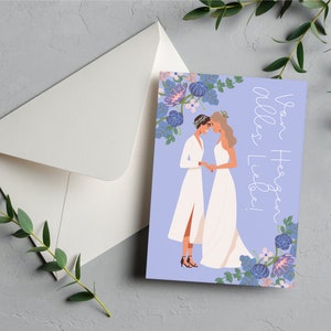 Hochzeitskarte für zwei Frauen, Hochzeit, Verpartnerung, heiraten, Hochzeitskarte, Karte zur Hochzeit, - Etsy.de